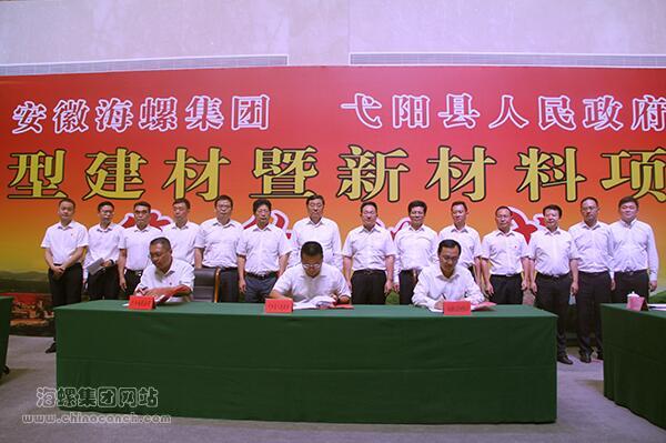 10月14日上午,海螺水泥與弋陽縣人民政府新型建材暨新材料項目合作協議簽約儀式在方志敏干部學院舉行。海螺集團黨委書記、董事長高登榜,集團總經理助理方原,海螺水泥副總經理李群峰,上饒市委常委、副市長雷平,弋陽縣委書記謝柏清,弋陽縣縣長陳敏等出席簽約儀式。常務副縣長陳長開主持簽約儀式,海螺水泥江西區域委員會主任李國友、弋陽縣縣長陳敏代表雙方簽署了協議。