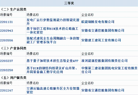 此次比賽中,安徽省屬企業共有1個應用場景獲得一等獎,3個應用場景獲得二等獎,6個應用場景獲得三等獎。