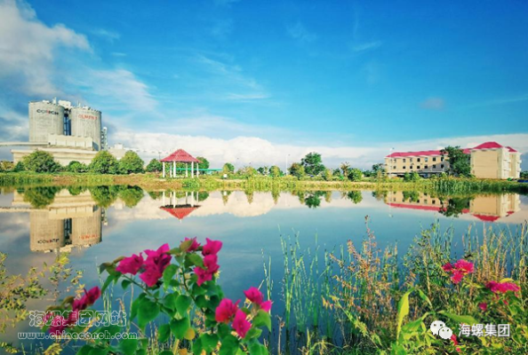 走進馬德望海螺廠區,綠水環繞,青山相倚,花草掩映成趣,人工湖埂和綠植共同組成的“CONCH”標志在衛星圖中也十分明顯,巧妙的設計使得自然和人文景觀相融極具特色,湖中成群的野鴨游過,一幅人與自然和諧共生的美麗畫卷徐徐展開。