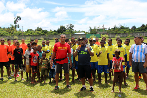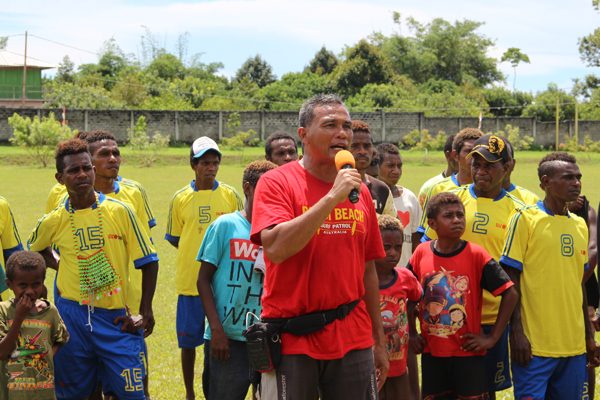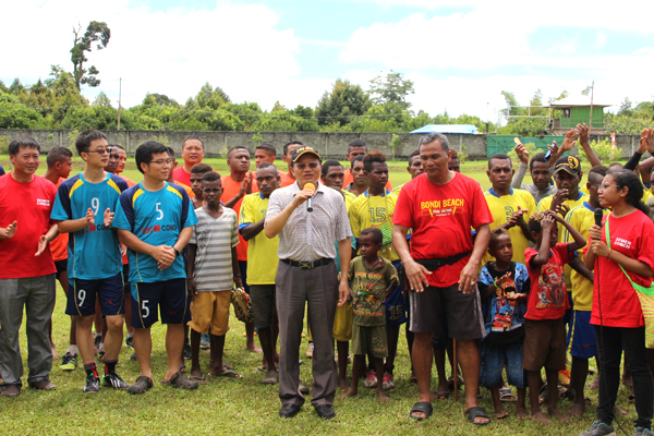 決賽開賽前,西巴公司總經理俞越應邀即興發言,他首先代表國投印尼巴布亞水泥有限公司全體干部員工,對本次足球盛會表示衷心的祝賀,對積極參加比賽的各代表隊和所有愛好足球的朋友們表示熱烈的歡迎,對裁判員和籌備比賽的工作人員表示誠摯的感謝!他希望通過本次足球友誼賽,能夠讓更多的人們了解西巴公司,支持西巴公司。他表示,公司將更加積極地融入當地社會,與大家建立更加緊密的關系,共同為建設美好的馬諾夸里而努力。他表示,相信通過首屆“海螺水泥杯”足球友誼賽的舉辦,公司與地方軍政部門及廣大村民間的友誼會像“海螺”牌水泥一樣,日久彌新,愈經風雨,愈加穩固!