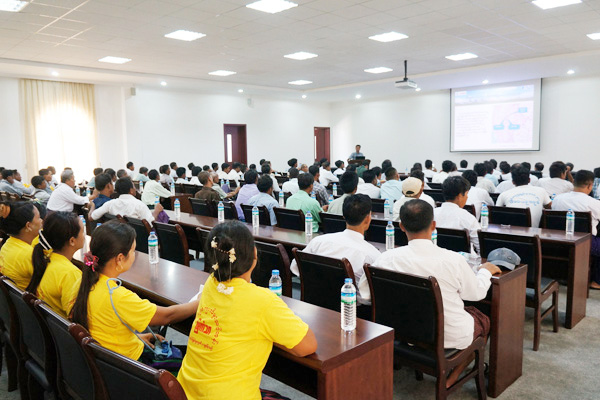 現(xiàn)場參觀結(jié)束后,在辦公樓三樓會議室,緬甸海螺向村民詳細(xì)介紹了緬甸海螺發(fā)展歷程、先進(jìn)生產(chǎn)工藝、環(huán)保技術(shù)裝備、公司發(fā)展帶來的經(jīng)濟(jì)社會效益及曼德勒項目規(guī)劃情況和未來預(yù)期。廣大村民聽取了介紹,并發(fā)表感言,一致認(rèn)為緬甸海螺公司技術(shù)先進(jìn),為第一次看到這樣一個現(xiàn)代化和花園式水泥廠感到高興,非常滿意此次參觀之行,并表示要大力支持曼德勒項目建設(shè)。