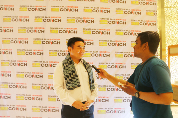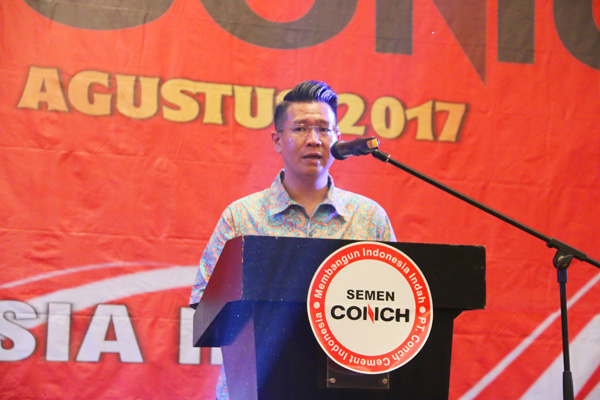 籌辦本次產(chǎn)品推介會(huì)的主要客戶CV.SUMATRA BAJA INDONESIA負(fù)責(zé)人Koyo先生致辭。他首先對(duì)海螺水泥的整體實(shí)力和在楠榜地區(qū)快速發(fā)展表達(dá)了欽佩,并通過列舉“海螺水泥捐建當(dāng)?shù)厍逭嫠隆薄昂B菟嗔x務(wù)開展當(dāng)?shù)貏诠な褂盟嗉寄芘嘤?xùn)”等實(shí)例,對(duì)海螺水泥投身印尼、建設(shè)印尼表示了贊揚(yáng)。他希望能與海螺水泥進(jìn)一步深化合作,通過共同努力,讓楠榜地區(qū)更多的商戶認(rèn)可海螺、選擇海螺。