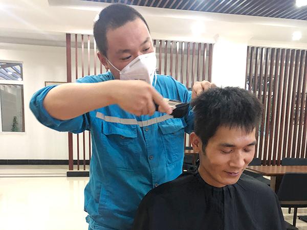 疫情期間,緬甸海螺公司實行封閉管理,為服務(wù)員工,公司大力挖掘各類手藝人,召集了一組理發(fā)志愿者,為員工提供免費理發(fā)服務(wù)。