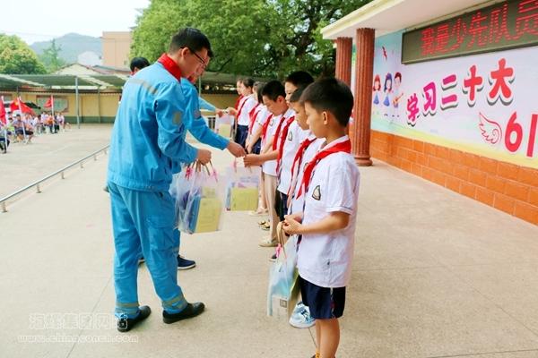叮鈴鈴……,伴隨著下課鈴聲響起,孩子們像鳥兒一樣歡樂地飛奔操場玩耍,一群年齡稍大的孩子門一眼認出了興安海螺的叔叔阿姨們。