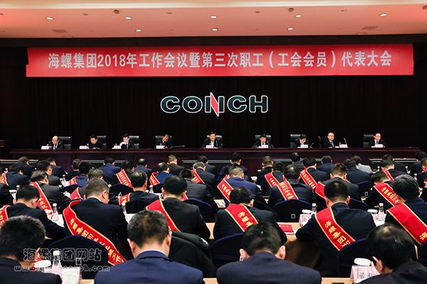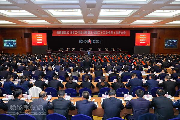 安徽海螺集團有限責任公司2018年工作會議暨第三次職工(工會會員)代表大會,在審議通過集團公司工會工作報告的決議,選舉產生安徽海螺集團有限責任公司第三屆工會委員會、經費審查委員會、職工監事,圓滿完成預定的各項任務后,于2月5日下午勝利閉幕。
