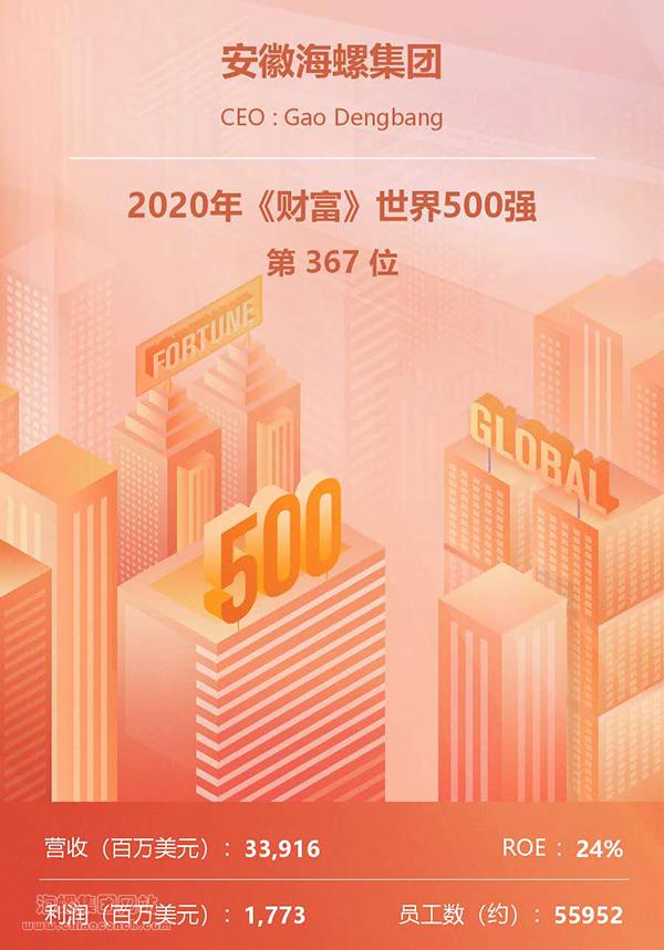 8月10日,《財富》雜志公布“2020世界500強企業”排名榜單,海螺集團以339.16億美元的營業收入位居第367位,較2019年大幅提升74位。《財富》同時發布了“2020年世界500強排名提升和下降最多公司”榜單,海螺集團位居排名提升最多公司榜單第13位,在中國企業中排名第4。